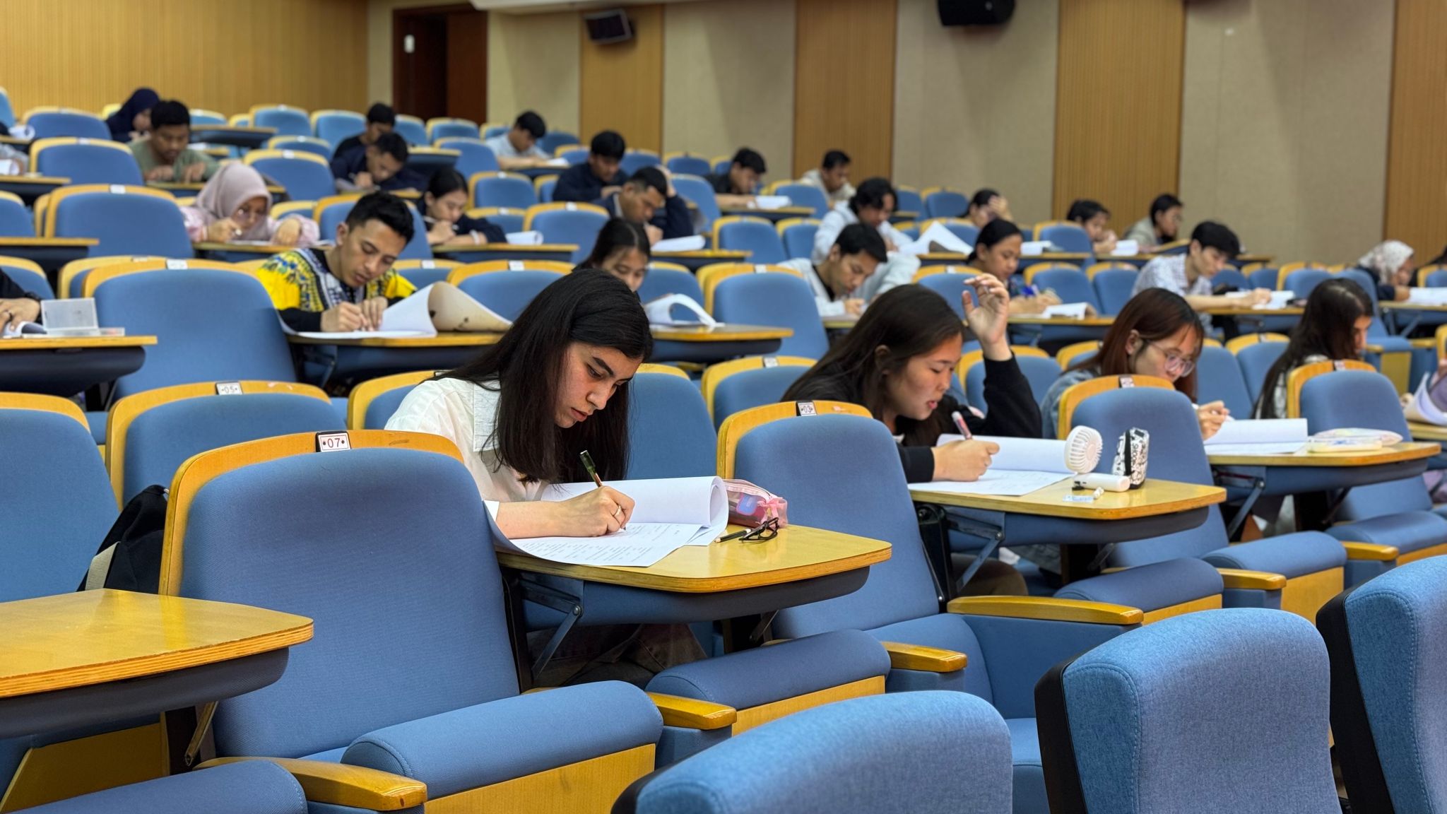 “这次大赛就像一场及时雨!”俄罗斯留学生KHALIAVIN MAKSIM感慨道,“通过考试,我清楚地知道了自己在语法和词汇方面的不足,接下来的学习也更有方向了。”为规范执行42号令,切实提升来华留学生汉语水平,助力其提高HSK等级考试通过率,同时强化汉语教学质量,beat365中文官方网站首届国际中文测试大赛于4月23日在南校区岩松堂雁山厅、步青厅顺利举办。