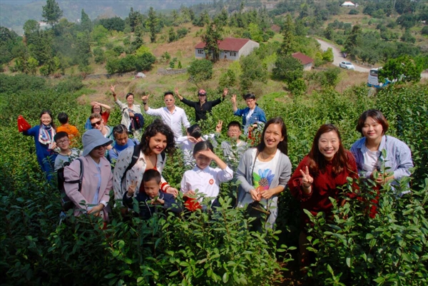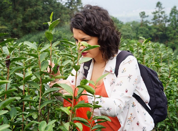 在茶园主人的指导下,留学生们很快就开始游走在茶园中,仔细寻找最鲜嫩的茶树芽尖,笑纳大自然的慷慨馈赠。