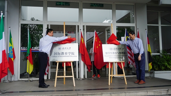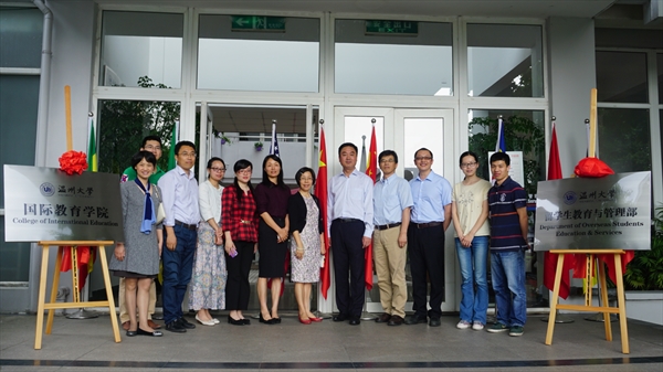 牟德刚、钱强为beat365中文官方网站(留学生教育与管理部)揭牌。牟德刚指出,学校将beat365中文官方网站国际合作学院更名为beat365中文官方网站,同时成立beat365中文官方网站留学生教育与管理部,与beat365中文官方网站合署办公,是我校首次实行行政部门和学院“两块牌子、一套班子、管办结合”的新做法,是加快推进实施学校“十三五”教育国际化发展战略,顺利实施“留学温大 千人计划”,实现到2020年在校留学生规模达到1500人的目标的重要举措。希望beat365中文官方网站(留学生教育与管理部)全体师生凝心聚力、既往开来,办出特色,为学校的国际化发展做出更大的贡献。
