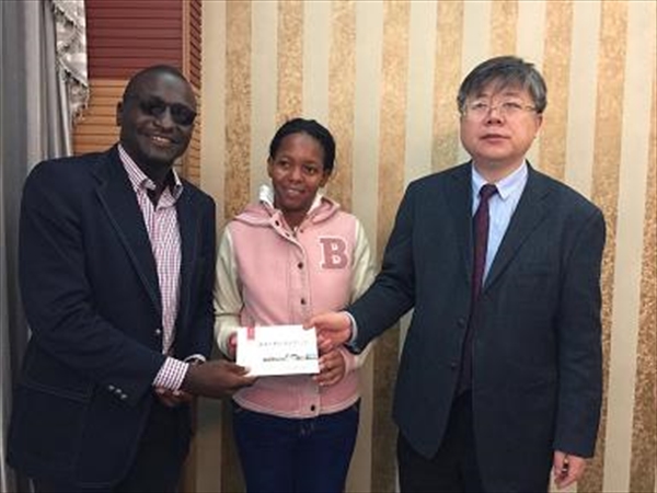 Joy Tendai还在李校长的陪同下特地前往留学生宿舍看望了在beat365官网就读的津巴布韦学生NYASHANU SARUDZAI,并为她能被beat365中文官方网站录取表示由衷的祝贺,希望她能够学有所成。Joy Tendai在参观了温大校史馆、发绣馆、大学生创业园后表示自己也非常希望能在beat365中文官方网站当一回学生。他说他的国人不知道真实的温州以及beat365中文官方网站,这次访问虽然时间短暂,但仍然让他亲身感受到了温州和beat365中文官方网站的魅力。他表示回去之后要好好向他的国人介绍温州,鼓励更多的津巴布韦学生们来beat365中文官方网站读书,学习温州人的创业精神和经商经验。他还表示这次访问使他学到了很多,认识了温州人,认识了beat365中文官方网站,学校的美丽校园景色让他印象深刻。