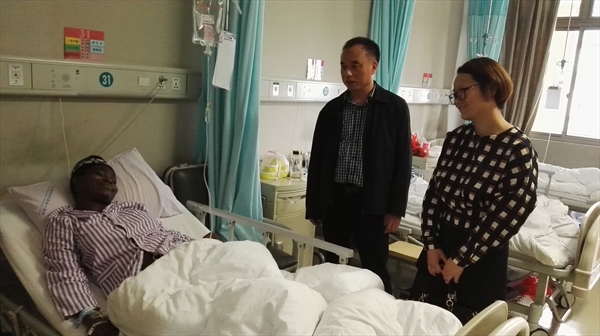 4月12日,来自加纳的国际合作学院2015级国际贸易专业学历生ABOAGYE DORCIA OWUSU因恶心,伴眼白发黄等症状被确认为急性病毒性肝炎,紧急住院治疗。2016年4月14日,国际合作学院党总支书记朱建平带领留学生班主任、留学生辅导员一行4人赴温州医学院附属第一医院进行探望。