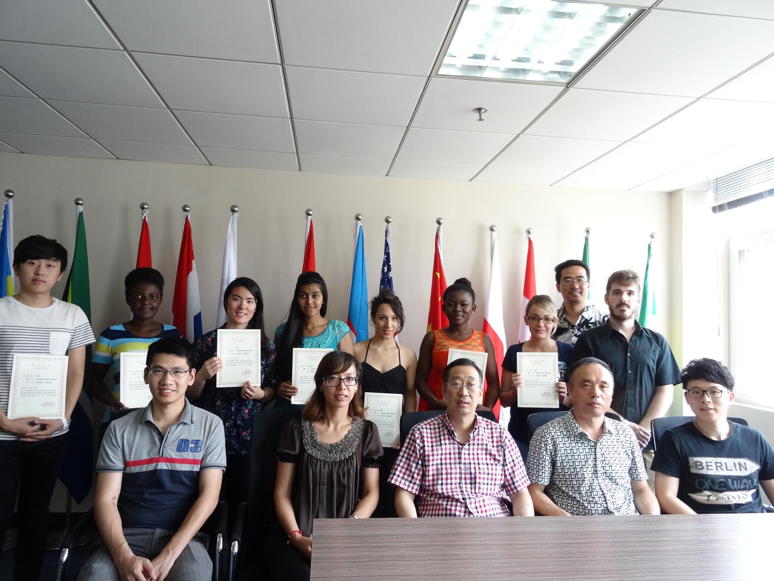 2014年beat365中文官方网站外国留学生奖学金颁奖仪式于近日在专家楼304会议室举行。国际合作学院院长严晓鹏、党总支书记朱建平出席仪式,包含丽、陈赞安、黄呼尔励等教师代表、获奖留学生及部分学生代表参加了此次活动。