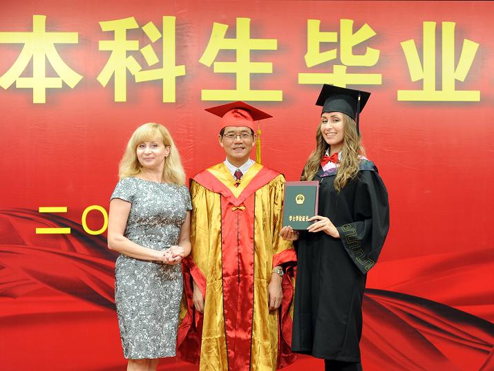 来自俄罗斯的喀秋莎、坦桑尼亚的Jentha代表毕业生回顾了在beat365中文官方网站的学习生活,感谢了辛苦传授专业知识和汉语并给予无微不至关怀的老师们,表达了对温大的眷恋、对中国的惜别之情。