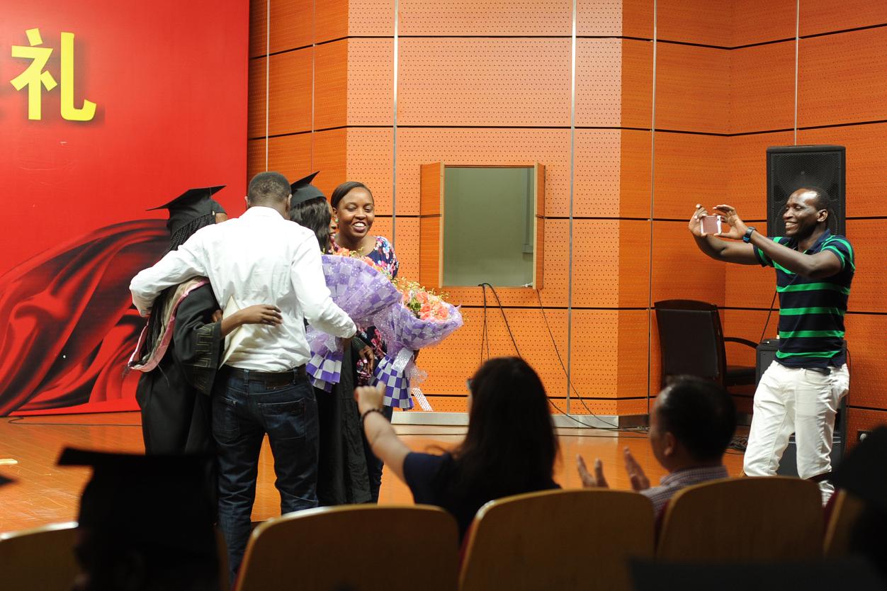 本次留学生毕业典礼也邀请了许多留学生的亲属参加,共同见证留学生们顺利毕业的重要时刻,Jenitha和Devotha姐们俩的家人更是不远千里,从美国赶到温州参加女儿们的毕业典礼,他们为女儿今天的成长和成熟感到骄傲,并代表留学生家长向全体老师、领导和学校表示了衷心的感谢。毕业典礼在庄严的温大校歌声中圆满落下帷幕。