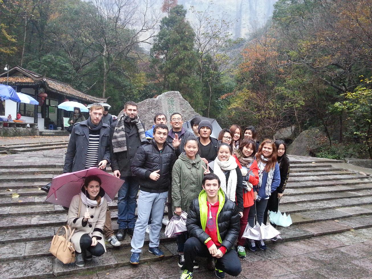 一下车,扑面而来的清新空气,让人顿感神清气爽,留学生们纷纷拿起手机记录这美丽景色。留学生们沿着石阶一路行进,峭壁危岩、层峦叠嶂、奇峰美石一一呈现,让他们赞叹不已。在欣赏美景的同时,带队老师还根据环境的变化,设置多个话题,引导学生们用中文畅谈体会。通过体验,留学生们感受到了中国山水的神奇与秀丽,在开阔眼界的同时,还练习了实景下的汉语口语运用,进一步激发了他们对中国文化的喜爱和探索之情。
