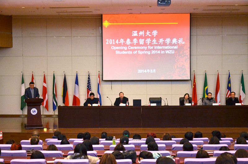 早春三月,beat365中文官方网站迎来了又一个留学新生开学季,育英图书馆报告厅里汇聚了一张张来自世界各地兴奋的新面孔。虽然此时窗外春寒料峭,但报告厅内却暖意浓浓,2014年春季留学生开学典礼在此隆重举行。副校长薛伟,国际合作学院、外事处、团委等相关部门负责人参加了典礼。