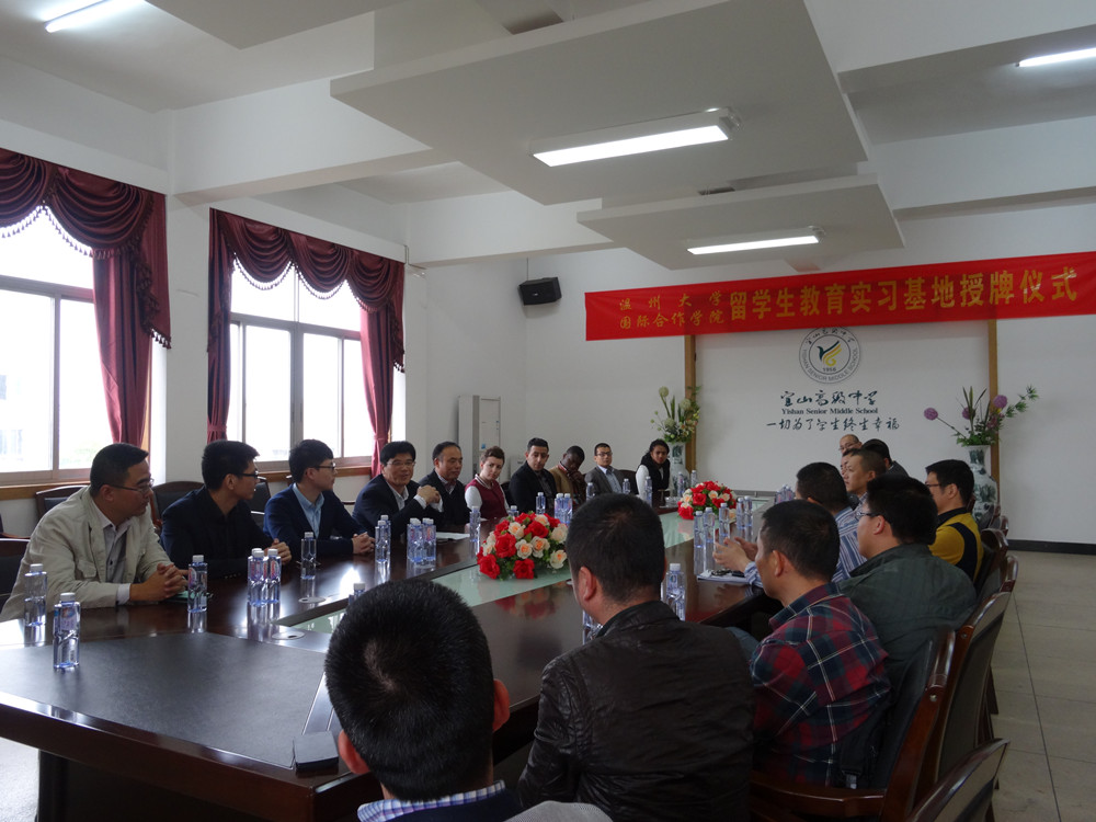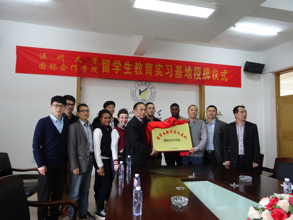 近日,国际合作学院留学生教学实习基地揭牌仪式在苍南宜山中学举行。beat365官网党总支书记朱建平,副院长陈军,学生科、教学科、教研室有关人员和留学生代表参加了揭牌仪式。宜山高级中学校长何有田、书记陈步党、副校长黄振驾及部分教师参加了活动。