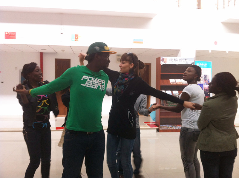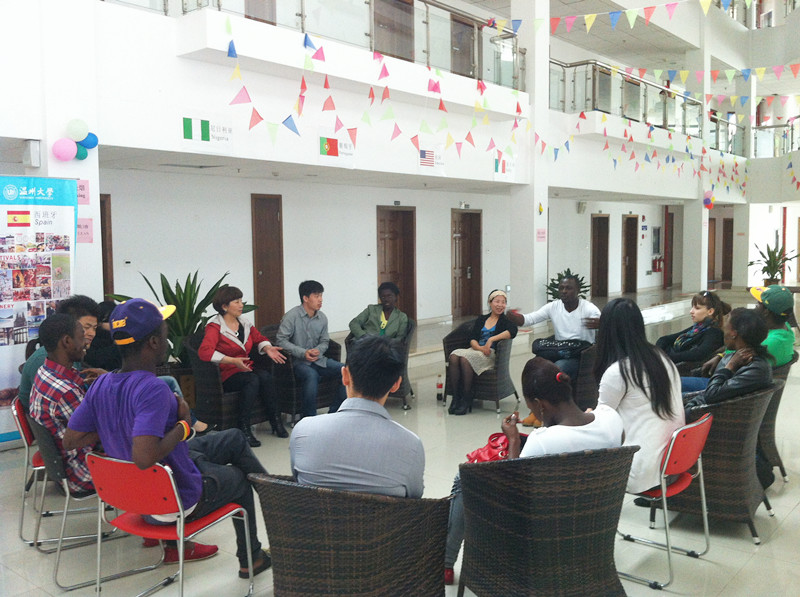 2012年4月17日早上10:00,国际合作学院13名留学生在校学生处张海音老师的带领下在南校区专家楼三楼大厅举行了一场特殊的主题班会——班级团体心理辅导活动。院学生科副科长张鲜艳和留学生辅导员陈敏青全程参与。