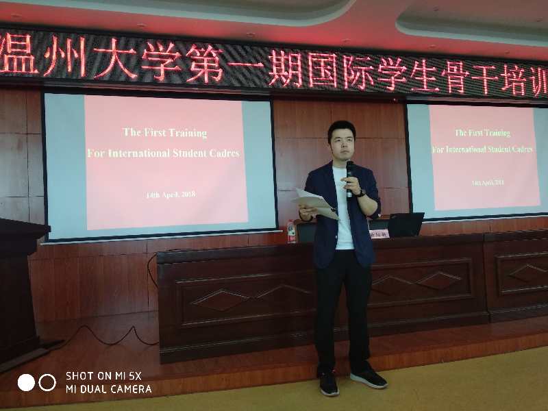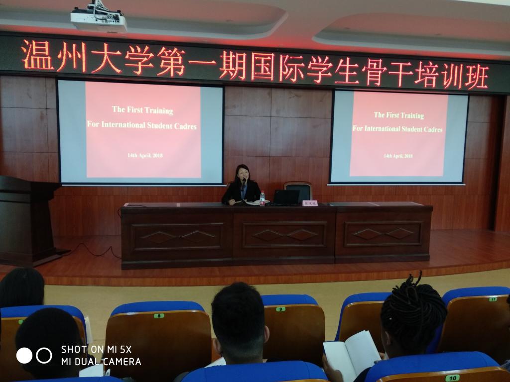 2018年4月14日,我校第一期国际学生骨干培训班在北校区3号楼203报告厅顺利举行,来自14个国家、8个学院和8个专业的65名国际学生骨干参加了此次培训。