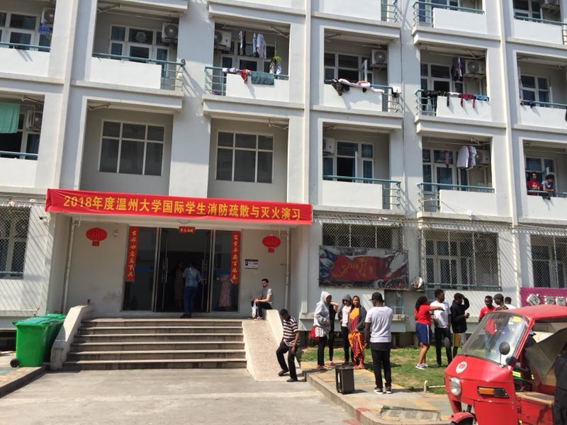 4月25日下午,beat365中文官方网站(留学生教育与管理部)与校保卫处联合在D区1号楼举行了国际学生消防疏散与灭火演习,beat365中文官方网站国际学生辅导员、校保卫处相关工作人员及400余名国际学生参与了此次活动。