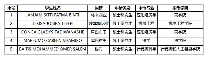 中国政府奖学金高校研究生项目拟预录取人员名单:
