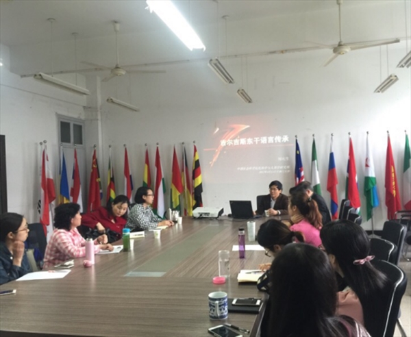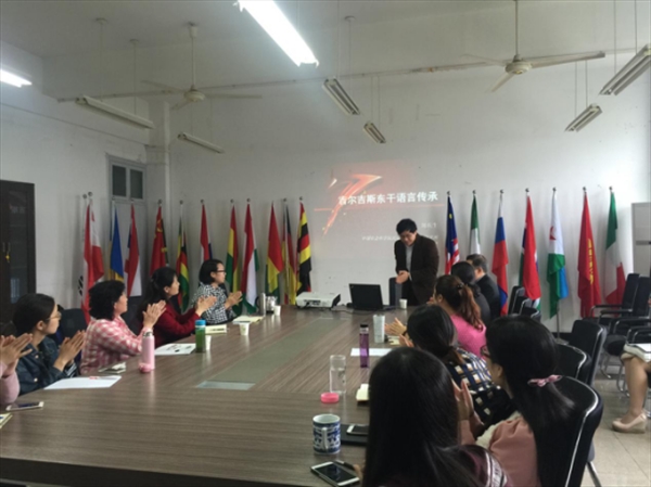讲堂上,周庆生教授用幽默生动的语言作了关于吉尔吉斯东干族(回族)语言传承调查的报告。他从研究选题缘起,研究视角,研究方法等各个方面做了介绍。周庆生教授认为东干语作为一种特殊的语言现象,研究它不仅为学界提供一个乡村移民族群,成功地可持续地传承母语、兼通双语或多语的典型个案,还可以在一带一路背景下,吉尔吉斯东干族参与国家建设贡献一份力量。