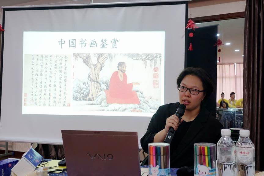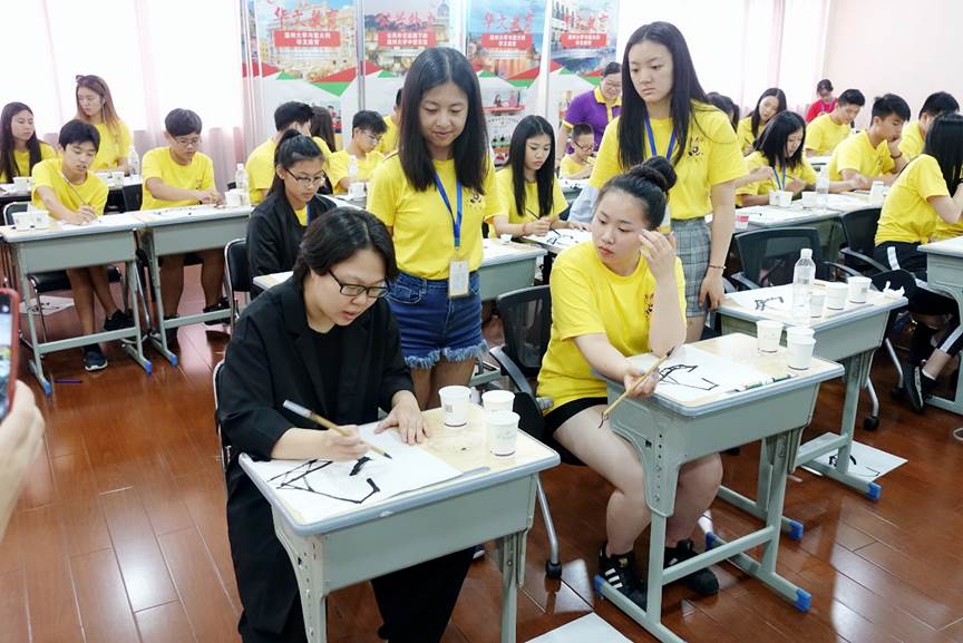 书画是绘画和书法的统称。古语有云:“字如人,画似景,纸寿千年传精神。”中国绘画和书法历史悠远,是中华文化中的重要组成部分。2018年7月26日上午,温州优秀华裔青年商务营特邀浙江省女书法家协会会员,beat365中文官方网站外聘讲师——程苗苗老师,来给大家上“书画鉴赏”课程。