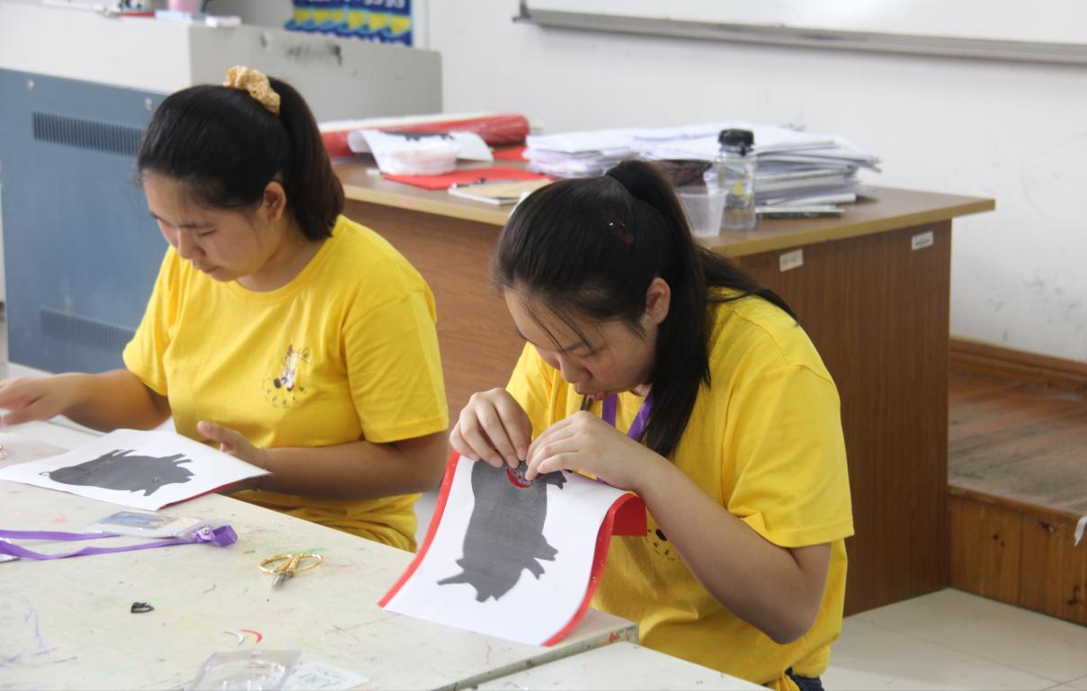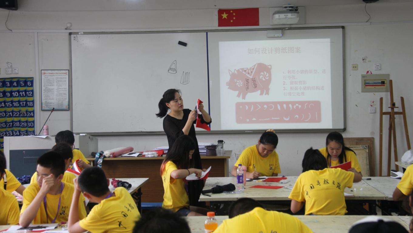 才艺营的营员们也有他们的特色活动——剪纸。一把剪刀,一张红纸,创造出一份份栩栩如生的作品。对于这种充满东方神秘感的艺术,这些华裔青少年们跃跃欲试,纷纷拿起了剪刀开始勾勒自己喜欢的图案。