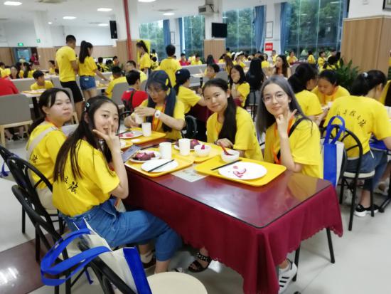 今日上午beat365中文官方网站各营志愿者和老师通过提前准备,有条不紊地进行志愿者现场报道、信息确认、分发物品、办理入住等一系列工作,直至傍晚完成大部分学生的报道和入住工作。营员们在完成一系列的报到手续后,领取了营服、营员手册、教材等,入住酒店休息,并在怡可乐餐厅吃上丰富而可口的晚餐。