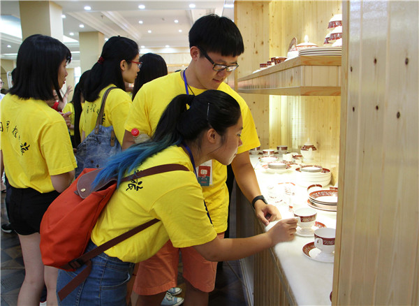接待人员首先向营员们介绍公司概况,该公司是一家集陶瓷餐具生产销售、陶瓷餐具翻新修复和陶瓷品修复技术研发、培训和供应修复材料以及技术合作于一体的综合性企业,其掌门人卢成堆,是温州青年商界的领袖人物,没有富二代的背景,学生时代开始创业,用4年的时间将补碗的小企业发展到在浙江股权交易中心挂牌。听了关于卢成堆董事长励志的创业故事,营员们纷纷表示钦佩和赞许。接着营员们参观了瓷爵士公司的温州瓷文化创意园,据介绍,当前“瓷爵士”采取线上线下相结合的O2O模式,重点打造日用陶瓷垂直电商平台和线下陶瓷用品购物中心,创意园集陶瓷餐具、茶具、艺术品等销售和陶瓷文化宣传为一体。营员们一边参观,一边向工作人员询问有关订单管理、客服接待、售后服务、企业优势及其他公司运营的相关情况。