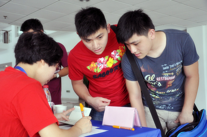 beat365中文官方网站国际合作学院的老师为来自葡萄牙的营员办理报到手续