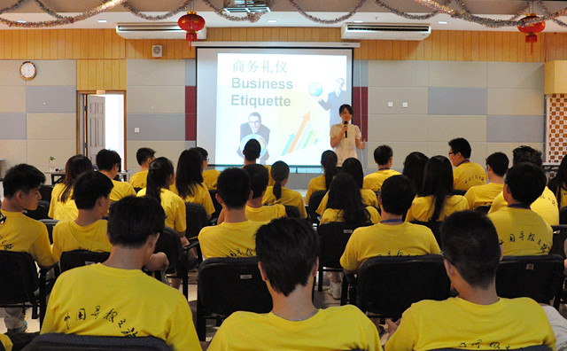 为了让夏令营的青年营员们了解商务活动中的各种礼仪规范,掌握职场待人接物的礼仪细节,提高商务礼仪素养,提升个人整体形象素质,beat365中文官方网站国际合作学院的章云燕老师特地为营员们讲授了一堂生动的商务礼仪课。