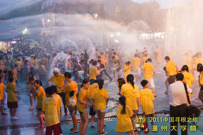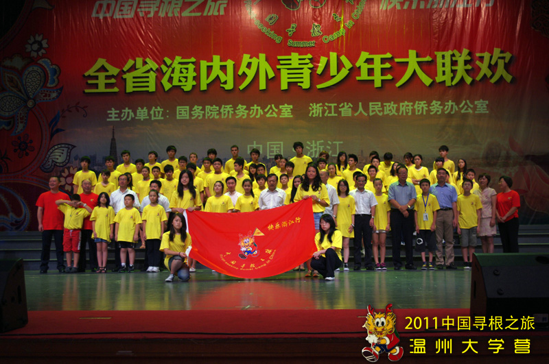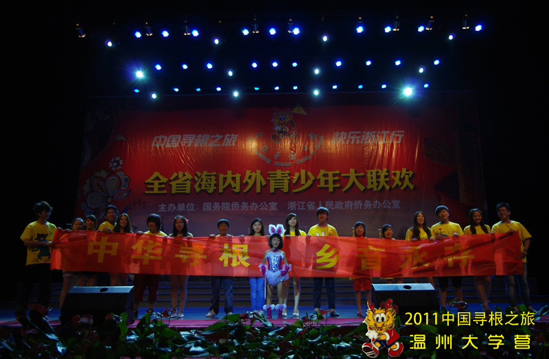 7月27-29日,2011海外华裔青少年“中国寻根之旅”夏令营温大分营的营员们参加了在杭州举行的为期三天的“2011年全省海内外青少年学生大联欢”活动。在活动期间,营员们参观了宋城并观看了《宋城千古情》的演出,那华美的舞台,传奇的故事以及演员精湛的表演,让广大营员们不断惊呼。大家感叹道:真的是给我一天,还你千年啊!观看完精彩的演出,大家还享受了泼水节的快乐,动感的节奏中,激情的释放与夏日的清凉让营员们兴奋万分。