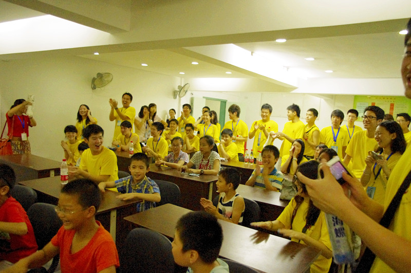 随后,大家走访了春秋社区,并和社区的小朋友们开展了一堂丰富有趣的欧美国家国旗展示课。由来自各国的营员们选派代表先让在座的小朋友们才图片上是哪些国家的国旗,随后详细介绍了侨居国国旗的内涵。最后一个小男孩上台向海外华裔青年介绍了中国的五星红旗的含义,大家对他报以热烈的掌声。随后,意犹未尽的小朋友们又提议要和大营员们玩“我来比,你来猜”的游戏,现场气氛活跃,大家毫无代沟地玩得不亦乐乎。