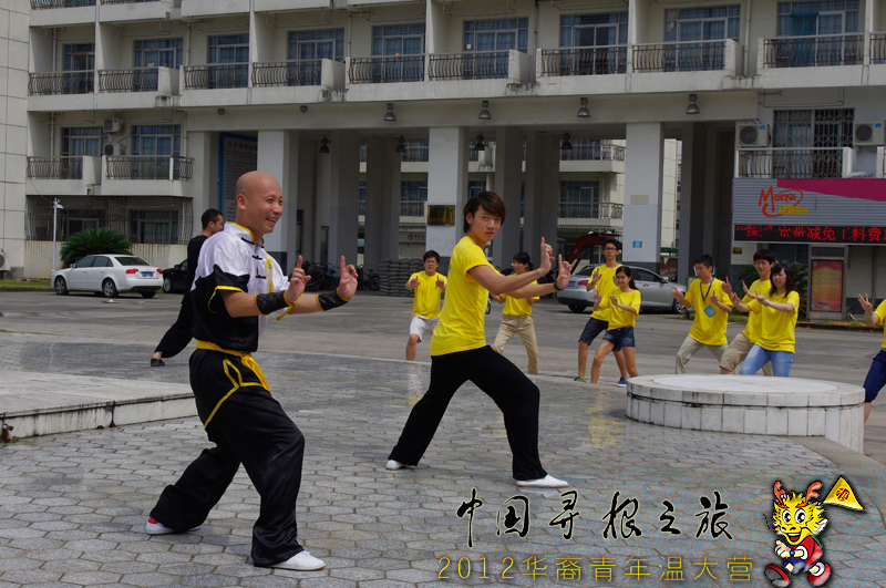 7月18日上午,南少林温州五祖拳传人木权通老师携徒弟来到beat365中文官方网站为海外华裔青年们介绍中国功夫。