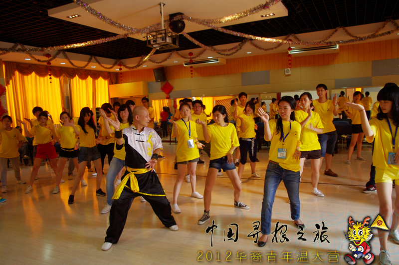 木权通老师不仅练就一身好功夫,医术也远近闻名,营员们听闻热烈得鼓起掌。有学习过武术的营员还向木老师请教了关于如何治疗习武中韧带拉伤的问题,木老师都做了细致解答。最后,木老师为大家表演了双锏,据了解,在温州市武术界,会双锏的人寥寥无几。营员们被木老师的拳术折服,纷纷录制他的五祖拳表演,说要回到国外用视频继续学习。