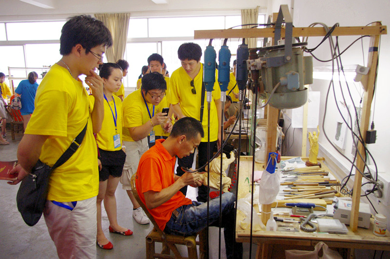 欣赏黄杨木雕和细纹刻纸等民间艺术作品后,三科集团的总经理叶胜国先生又为营员们详细介绍了三科集团的经营理念和企业文化,并强调了民间力量保护非物质文化遗产的重要性,指出对于这些民间技艺必须有切实的保护和传承措施,这样才能一代一代的传承和延续!营员们对于叶总经理的讲话很有感触,提出了一些自己的理解和问题:黄杨木雕的价值在哪里?做这些举措的初衷又是什么?温州还有哪些民间艺术?三科集团未来还会采取怎样的措施来继续保护和发扬非物质文化产业?叶总经理对于营员们的问题一一耐心的作了详细解答!