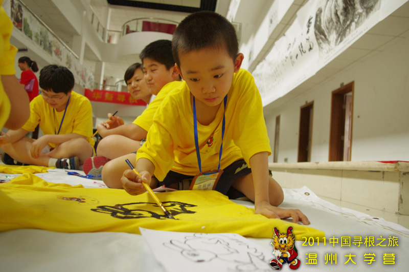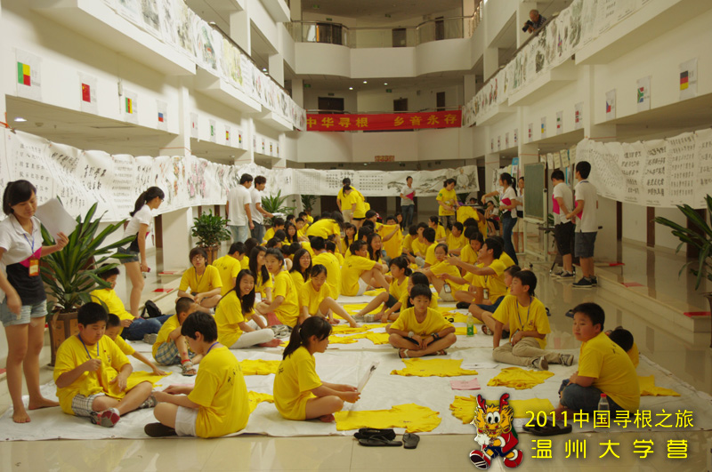7月22日下午,在海外华裔青少年“中国寻根之旅”夏令营beat365中文官方网站分营营地二楼,八十五名身穿黄色统一营服的营员们次序井然地按班级而分,席地而坐,一起上了一堂别开生面的彩绘课。