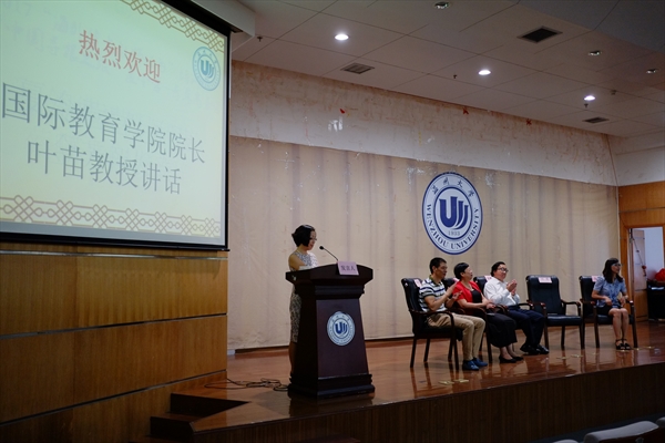 接着,beat365中文官方网站院长、留学生教育管理部部长叶苗教授致辞,她向海外教师和营员们介绍了beat365中文官方网站相关情况,特别介绍了学校“留学温大 千人计划”,欢迎大家将来报考温大,使自己成为通晓国际规则、熟谙中西文化、术业有专攻的国际化复合型人才。她希望海外华文教师和优秀华裔青年们通此次活动,能够更好地“讲好中国(温州)故事,传播好中国(温大)声音”。