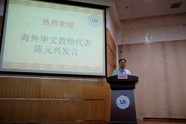 接下来,德国柏林益智中华文化学校的陈元兴老师代表教师们作了发言,他首先对beat365中文官方网站表示了感谢,对beat365中文官方网站华文教育研究所近年来在欧洲华文教育领域作出的成果表示赞叹,他认为:欧洲华文学校进入了繁荣期,研究所紧抓欧洲特色,利用侨乡资源,针对欧洲华文教育开展了各类研究,理论成果丰硕。而在理论指导下的华文教师证书培训班和“中国寻根之旅”青年夏令营活动,更是让人充满信心。
