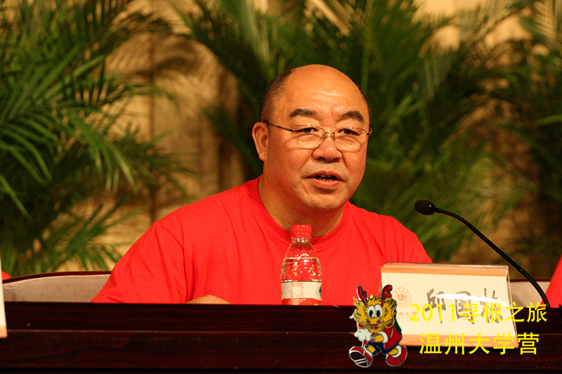 随后,意大利佛罗伦萨海外华文校长潘世立代表海外华文教师发言,表示要把中国文化向世界传播开来,做好中国文化传播掌旗人的工作!然后,温州市委常委、统战部部长余梅生代表温州市委、市政府领导对此次海外华裔青少年“中国寻根之旅”夏令营表示高度地重视,对温州海外华裔的“寻根”工作表示大力的支持。最后由浙江省侨办副主任邱国栋宣读此次夏令营正式开始,并对各个分营进行了授旗仪式,对第二批华文教育基地进行了授牌仪式。