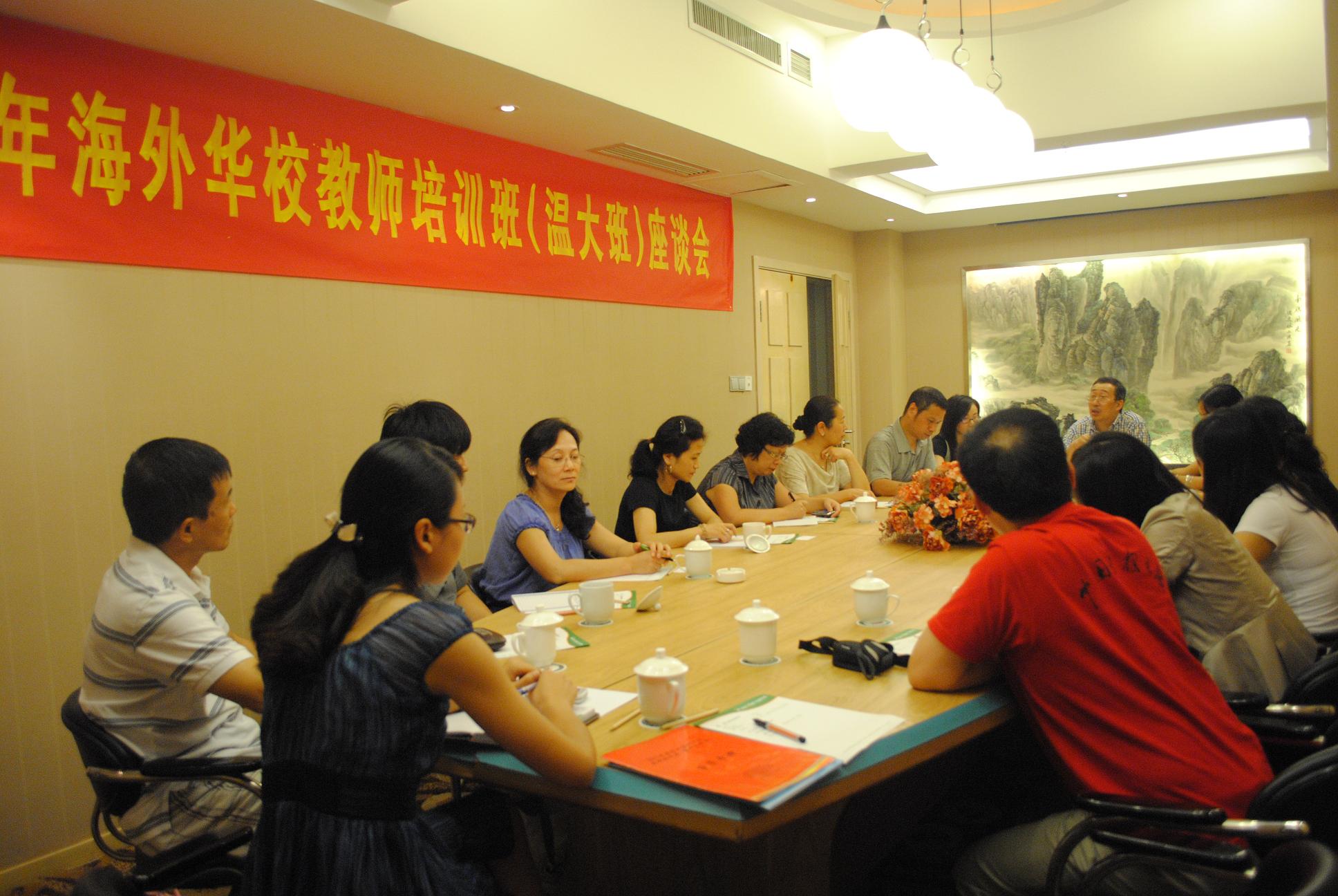 来自法国、意大利、奥地利、葡萄牙、美国、德国等9个国家的海外华校教师参加了座谈会。会上,海外华校教师各自介绍了所在华文学校的情况,并就此次培训班的授课教师、课程设置以及饮食住宿等方方面面畅所欲言,大家纷纷表示通过几天的学习,受益非浅,认为各授课老师的教学方法以及教学手段很有启发性,并希望日后有机会能够继续来beat365中文官方网站参加此类培训班。许捷副主任在倾听了各位海外华校教师们一周以来的心得体会后作总结讲话,希望海外华教师们能够多加强沟通交流,共同促进华文教育的发展。
