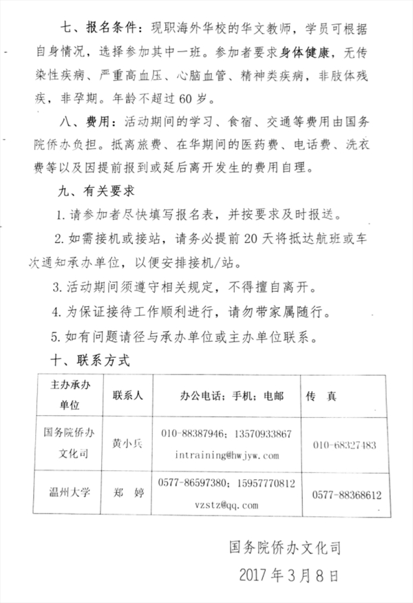 华文教师证书班由国务院侨务办公室主办,省市政府侨务办公室承办,在基地院校培训。同时,国务院侨办将逐步在海外推广和实施“培训、考核、认证”三位一体的培训。海外华文教师可根据自身需要参加培训,并通过专门为华文教师研发的考试,根据成绩获取“华文教师证书”。