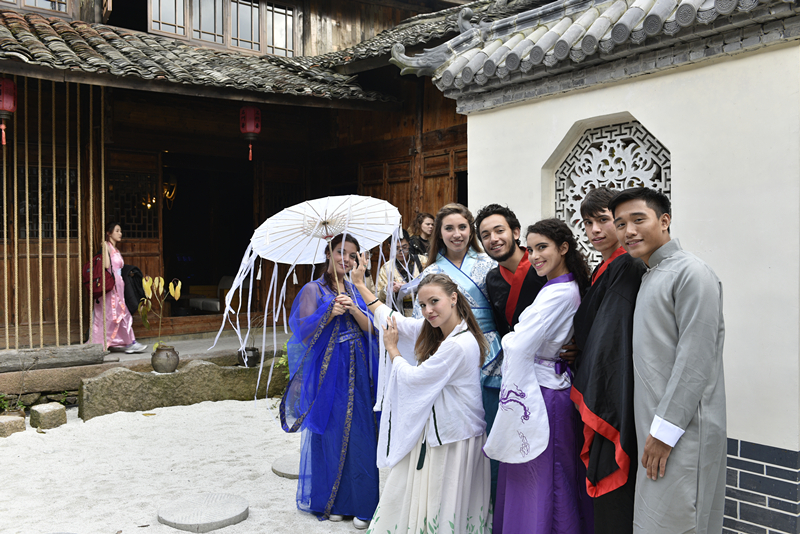 12月2日,beat365中文官方网站国际学生们身穿汉服在文成县下石庄村感受古村落的自然风光和文化底蕴。