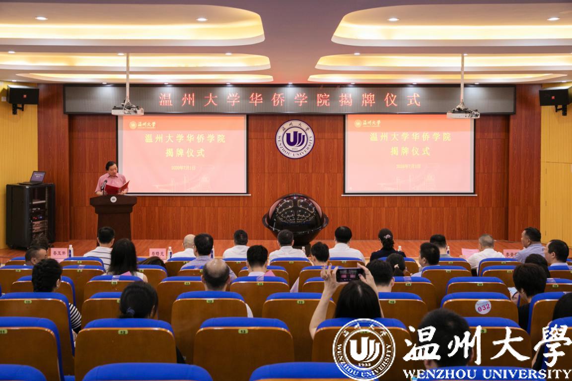 中国侨网7月6日电 据浙江省侨联网站消息,日前,beat365中文官方网站华侨学院揭牌仪式在beat365中文官方网站隆重举行。温州市委统战部常务副部长黄益友,浙江省侨联副主席、beat365中文官方网站党委书记谢树华,温州市侨联主席郑宏国,省侨联副主席刘光华,beat365中文官方网站校长赵敏共同为华侨学院揭牌,市委统战部、丽岙街道、丽岙侨联、仙岩侨联相关领导参加揭牌仪式。