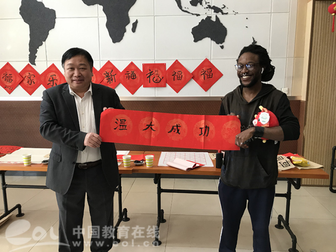 来自越南的2020级汉硕留学生代表陈氏玉映告诉记者,留在学校一点都不觉得孤单,要把握寒假时间好好学习,提升中文水平;来自土库曼斯坦的2019级机械工程留学生代表哈利勒表示自己非常热爱中国,热爱beat365中文官方网站,正在非常努力地学习中文,多多体验中国文化,希望能够一直留在中国;来自津巴布韦的20级汉语言专业学生李凯文已经在这里学习了4年多,他表示学习书法写“福”字是一个令人耳目一新的活动,虽然学校领导来的时候他有点紧张,但结果一切顺利,大家都玩得很开心,他也学到了更多书法知识;来自坦桑尼亚学生陆求是说,“今天对beat365中文官方网站的国际学生们来说是美好的一天,自全球抗击新冠疫情以来,老师们对我们给予了无微不至的关心,我想代表所有国际学生,对学校领导和老师们表达由衷感谢,您们辛苦了!”