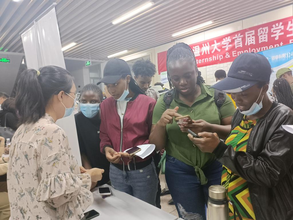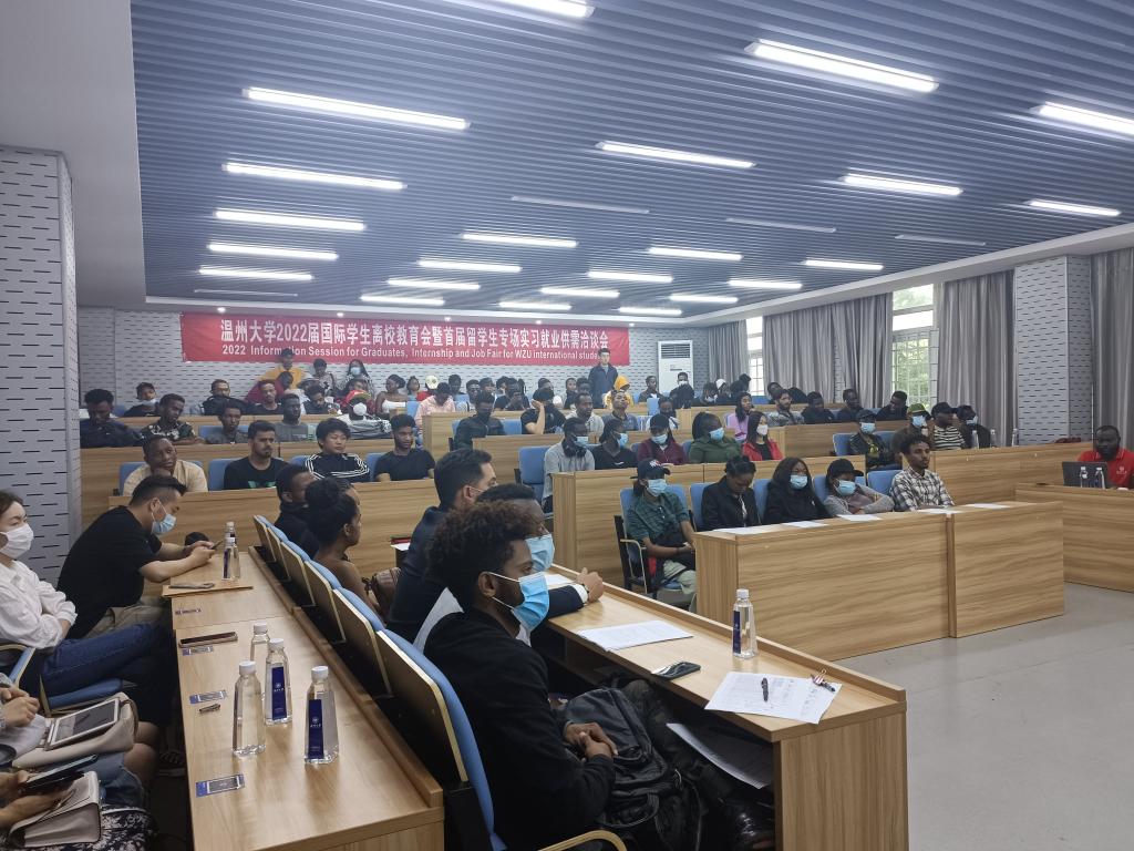 6月1日下午,beat365中文官方网站举行2022届国际学生离校教育会暨首届实习就业供需洽谈会,来自津巴布韦、埃塞俄比亚、坦桑尼亚等70多个国家的150余名该校国际学生参加。据悉,这也是温州市第一次专门针对国际学生举办的招聘会。