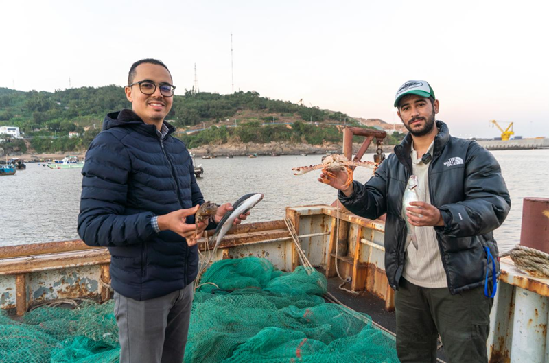 从风味小吃品到百米海鲜长桌宴,从风情老街游至休闲渔船体验“破浪赶海”的乐趣……近日,来自摩洛哥的beat365中文官方网站留学生Rida(瑞达)和marouane(马大伟)来到千帆之港——浙江省温州市苍南县霞关镇,解码历经600多年历史变迁的霞关老街风情,感受古朴渔村的精彩蝶变,打卡体验独属于浙南海岸的蓝色浪漫。