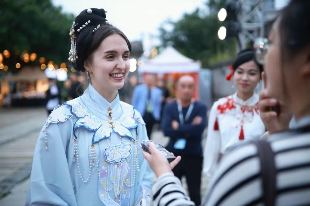 “我非常喜欢中国的传统文化,一切都美丽又有趣。穿上汉服在青灯集市游街逛市,体验中国传统文化,这种体验真的太奇妙了!”来自俄罗斯的留学生柳芭激动地分享道。留学生们在汉服的映衬下,不仅感受到了中华文化的庄重与优雅,更领略到了其深厚的内涵与魅力,为他们的留学生活增添了一抹绚丽的色彩。
