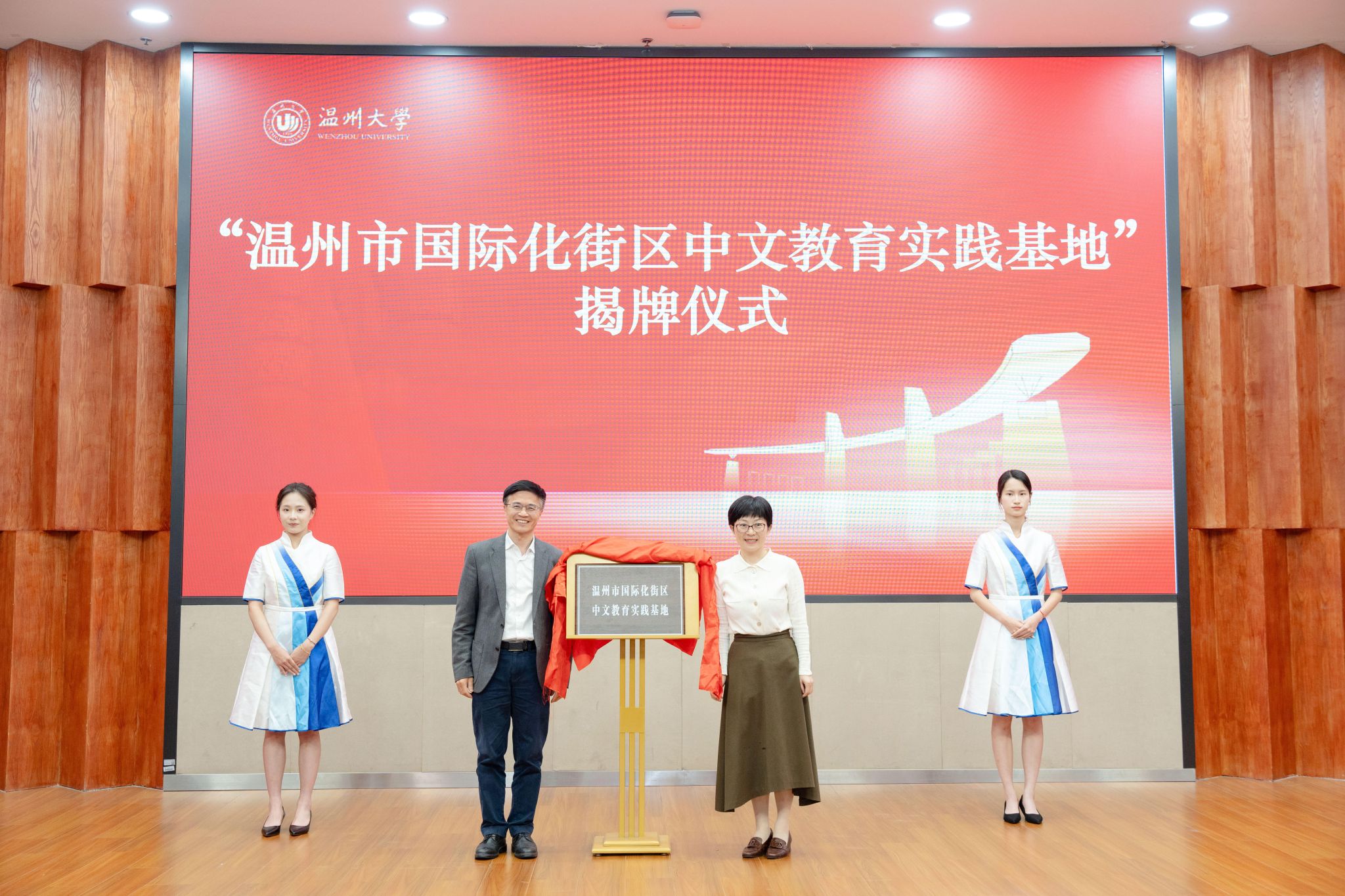 beat365中文官方网站党总支书记林爱菊与温州市人民政府外事办公室副主任楼了凡共同为“温州市国际化街区中文教育实践基地”揭牌,标志着校地合作在推进国际化社区语言服务方面迈出实质性步伐。