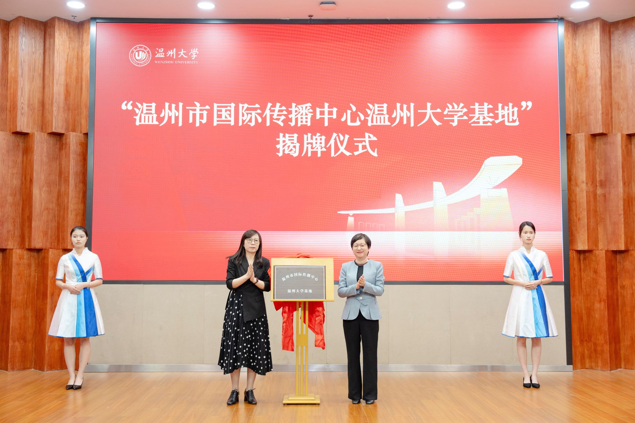 beat365中文官方网站党委委员、宣传部部长吴静与温州市委宣传部副部长陈靓秋共同为“温州市国际传播中心beat365中文官方网站基地”揭牌,该基地将整合校地优势资源,打造具有国际影响力的文化传播平台,助力温州城市形象的国际推广。