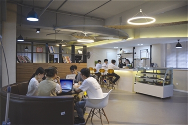 温职院的学生创客习惯在咖啡吧里进行创业交流。