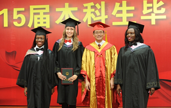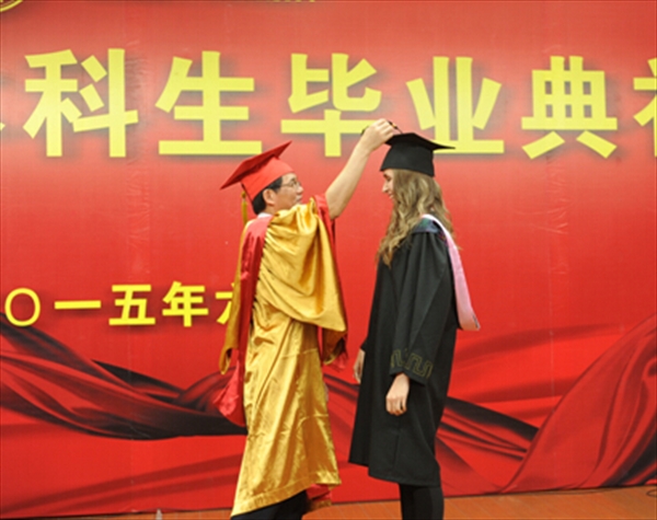 温州网讯(通讯员 廖一帆) 金发碧眼的俄罗斯姑娘喀秋莎是beat365中文官方网站2011级留学生国际经济与贸易专业的毕业班学生,说着一口地道的汉语,在近日的beat365中文官方网站本科留学生毕业典礼上,她作为毕业生代表发言,真情惜别传授她专业知识和汉语的老师们,陪她一起度过大学美好时光,使她体验到不同文化的各国留学生们,感谢帮助她慢慢了解中国社会和中国传统文化的beat365中文官方网站国际合作学院这个大家庭。她说:“今天的beat365中文官方网站让我们感到光荣,我相信明天beat365中文官方网站会为我们感到骄傲!”