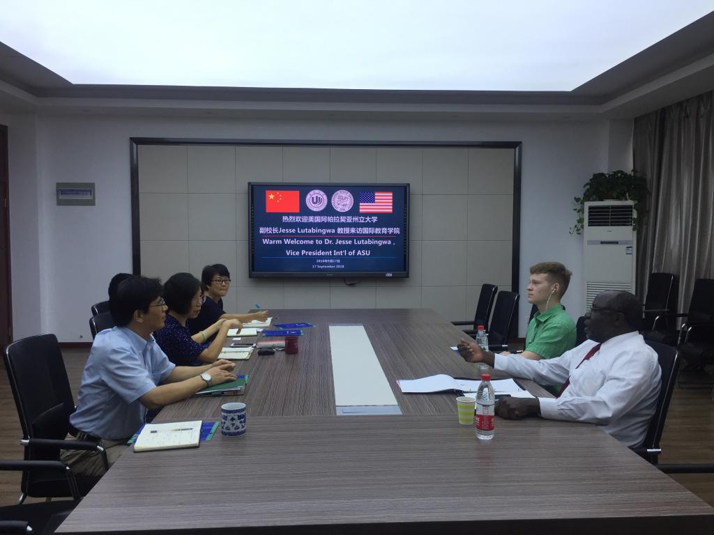 2018年9月17日上午,美国阿帕拉契州立大学(ASU)副校长Jesse Lutabingwa来beat365官网交流访问。beat365中文官方网站相关负责人会见了来宾,双方就两校交换学生等合作事宜进行了洽谈。
