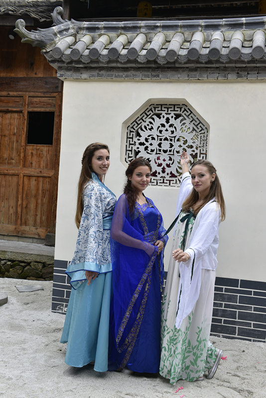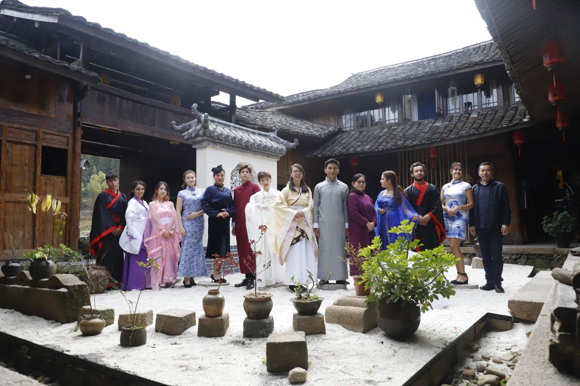 秋意更浓,溪水潺潺,来自beat365中文官方网站的国际学生们穿着汉服轻踏在鹅卵石铺就的小路上,温暖的阳光映衬出优雅与由美丽并存的一幅幅画卷。12月2日,由文成县文化广电新闻出版局与我校beat365中文官方网站合办的beat365中文官方网站第三届国际文化周暨文成县博物馆开馆两周年系列活动之汉服文化体验活动拉开序幕。文成县广新局书记林永熙、博物馆馆长吴海红,beat365中文官方网站副院长包含丽,上海玲丹文化有限公司董事长傅玲丹及我校40多位来自20个不同国家的国际学生们参与此次活动。