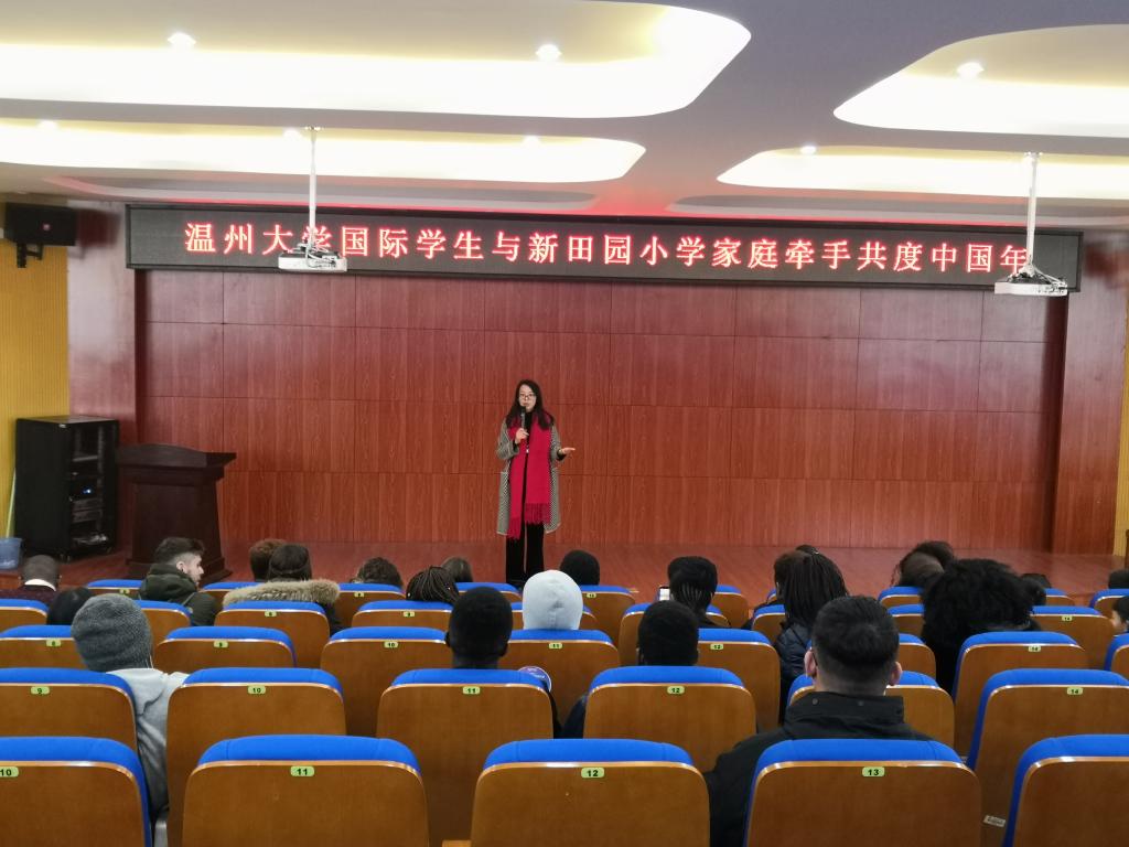 1月21日,我校国际学生与新田园小学家庭共度中国年活动在北校区3号楼203会议室举行。beat365中文官方网站副院长包含丽、温州市新田园小学副校长洪艳、两校老师、新田园小学学生及其家长们、25名国际学生参加了此次活动。