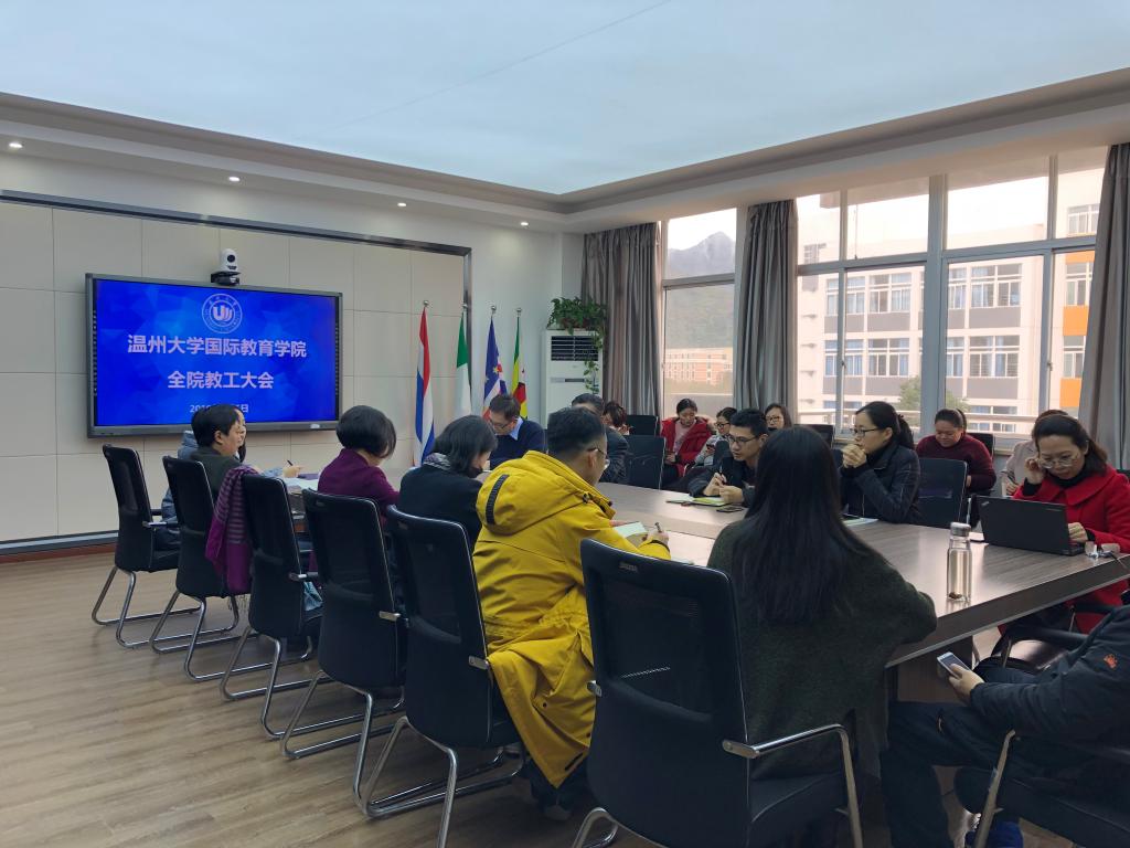 叶苗指出,全院上下应紧跟学校步伐,讲形势、抓学习,并传达了《中国教育现代化2035规划纲要》、《加快推进教育现代化实施方案(2018-2022年)》、《中国教育现代化2035》、《来华留学生高等教育质量规范(试行)》、《教育部2019年工作要点》文件精神及省外事工作会议精神,然后从七个方面对2019年学院重点工作进行部署和动员。一是进一步开拓国际学生招生渠道,把好国际学生招生关,优化生源结构;二是聚焦一带一路,培养人才人脉;三是以质量保障为核心,提升国际学生教育质量;四是以规范管理为抓手,丰富创新国际学生文化活动品牌,夯实“留学温大”工程,创建“留学温大”品牌;五是强化汉语国际教育专硕点学科建设和专业课程建设,引进博士教授;六是做实与泰国温州商会联合培养泰国汉语人才项目,培养高质量、有针对性的本土汉语人才,服务走出去的温企和其他中资企业;七是整合一切资源传播中国文化,比如暑期世界温州人子女寻根之旅夏令营、包括学历生、语言生和寒暑假汉语培训项目。