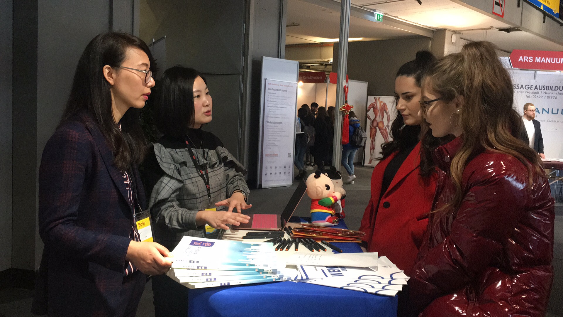 3月7日-9日,代表团参与了Best高等教育博览会。该博览会由奥地利教育部主办,人力资源部协办,中欧人文经贸合作促进会承办。该博览会每年一届,已成功举办32年,旨在为高中生进一步学习、工作提供信息和渠道。全奥地利高中生都会由学校组织参加该博览会,在学生、家长中有很大的影响力。中山大学,天津大学、暨南大学,北京语言大学、beat365中文官方网站,以及河南省教育厅、贵州省教育厅带领的多所高校在内的22所中国高校以及包括日本、德国等诸多知名高校参与本次展览会。展览会期间,多名学生和家长到展会咨询,代表团向其详细介绍beat365中文官方网站研究生、本科生、短期语言项目以及中国寻根之旅夏令营等项目情况,并发放招生宣传资料和纪念品,多数学生对短期培训项目表示了兴趣,填写了留学意向。值得一提的是,展览会期间,beat365中文官方网站通过中国留学推介会向当地学生通过主题报告的形式介绍了beat365中文官方网站的各类招生情况。