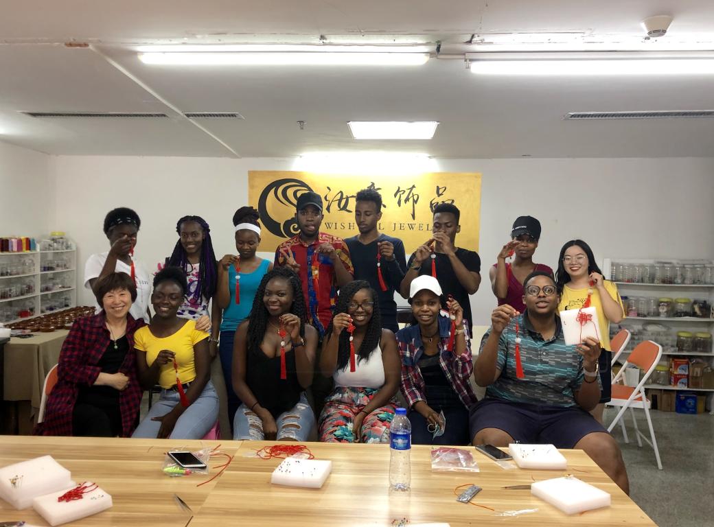2019年5月23日下午,beat365中文官方网站“走进温州”课堂的22位留学生们在老师的带领下来到大学生创业园的汝意饰品工作室,亲自制作了传统中国结。