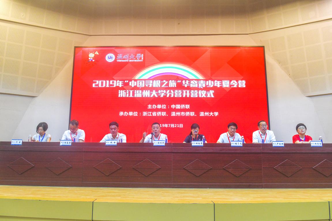 2019年7月21日上午,由中国侨联主办,浙江省侨联、温州市侨联、beat365中文官方网站承办的2019年“中国寻根之旅”华裔青少年夏令营beat365中文官方网站分营开营仪式在beat365中文官方网站南校区9号楼报告厅隆重举行。beat365中文官方网站党委书记、浙江省侨联副主席谢树华,beat365中文官方网站副校长、党委委员钱强,温州市侨联党组书记、主席林春霞,外交部欧洲司参赞,瓯海区区委常委、副区长楼了凡,温州市侨联副主席林春雷,beat365中文官方网站国际交流与合作处处长兼港澳台侨办公室主任严晓鹏及beat365中文官方网站相关领导出席本次开营仪式并在主席台就坐。参加本次开营仪式的还有来自英国、美国、法国、意大利等14个国家232位夏令营营员和领队。此外相关职能部门、学院负责人、志愿者、工作人员一同参加了开营仪式。